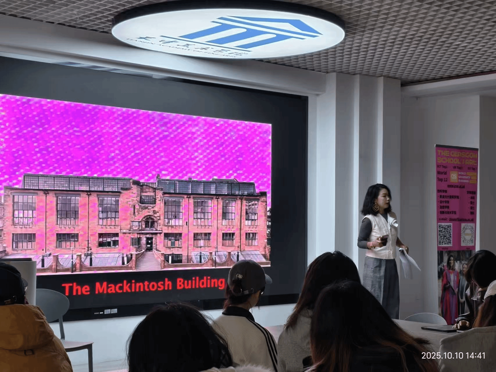 格拉斯哥美术学院1+1+1硕士宣讲会由该校驻中国区首席代表王小爱女士主讲。王老师带领同学们走进这座被誉为“欧洲文化之都”的城市风貌,以及在城市文化塑造之下的拥有近两百年历史的格拉斯哥美术学院。她系统介绍了格拉斯哥美术学院的历史沿革与学科框架以及国际化、多元化的校园氛围,并生动描绘了学生在格拉斯哥的学习与生活图景,为在场同学提供了宝贵的一手资料。