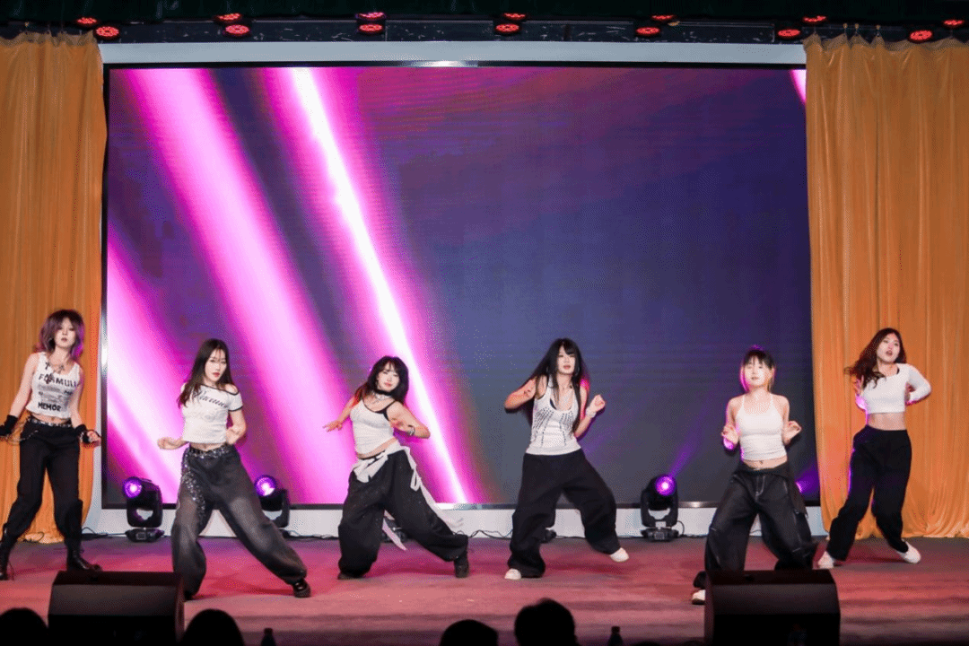本次活动特邀舞蹈社、街舞社热力助阵,成员们踏着强劲鼓点登场,卡点精准的齐舞、充满力量感的肢体律动瞬间点燃全场,为整场赛事注入满满的青春活力。