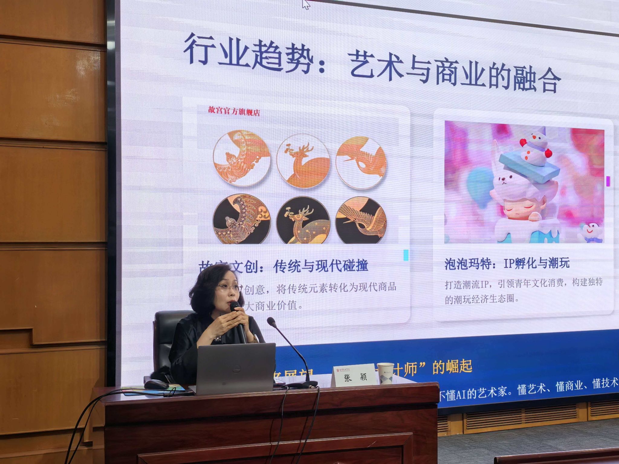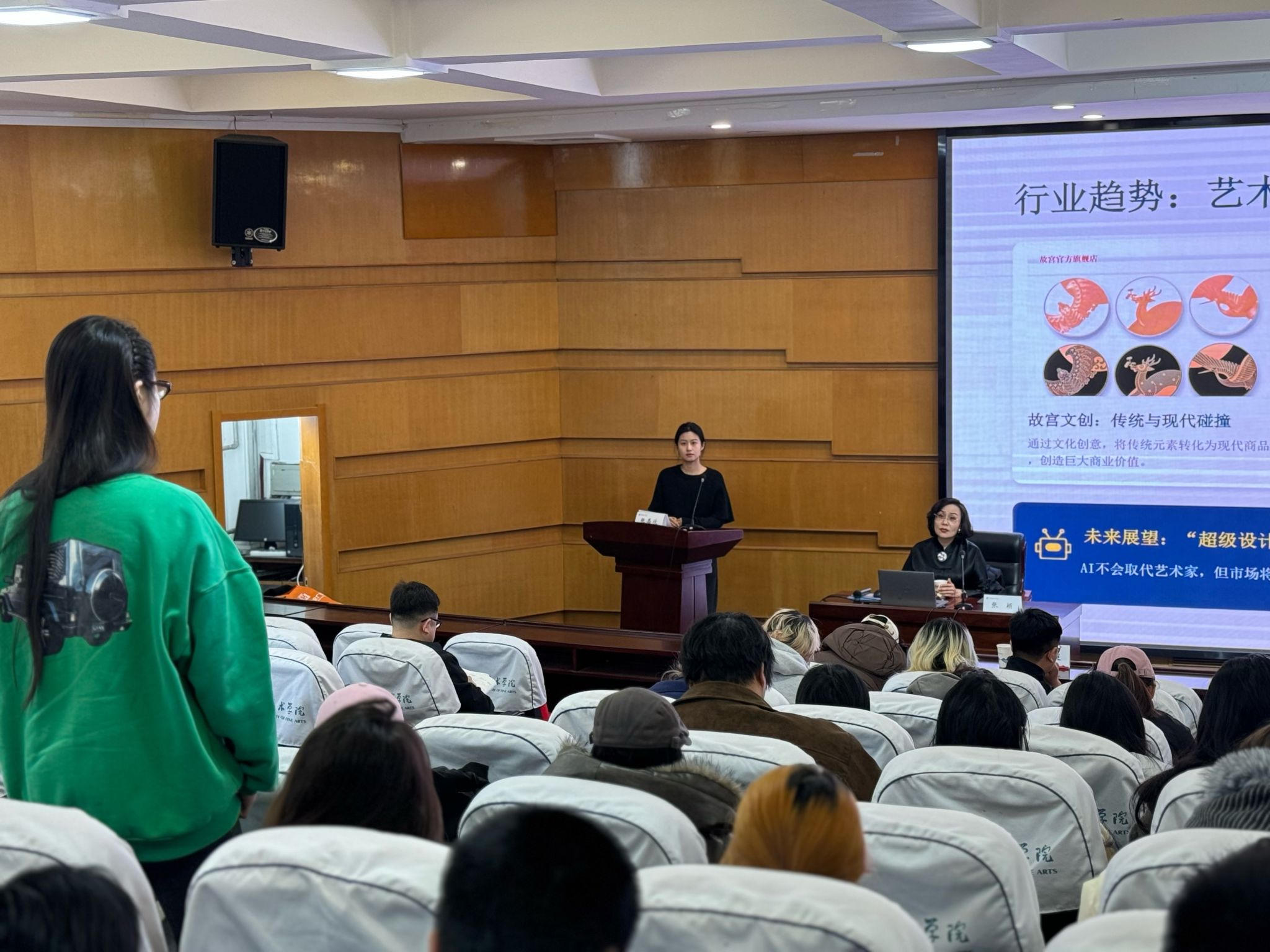 张颖首席运营官介绍了标杆环球集团在文化创意产业、商业空间设计等领域的布局,表示集团对兼具艺术素养与实践能力的复合型人才需求迫切,愿与天美搭建产学研融合平台,打造特色商业空间,为学生提供实习实践与就业岗位。陈菁菁副行长从金融服务角度分享了支持文化艺术产业发展的相关政策,助力艺术人才实现创意落地。