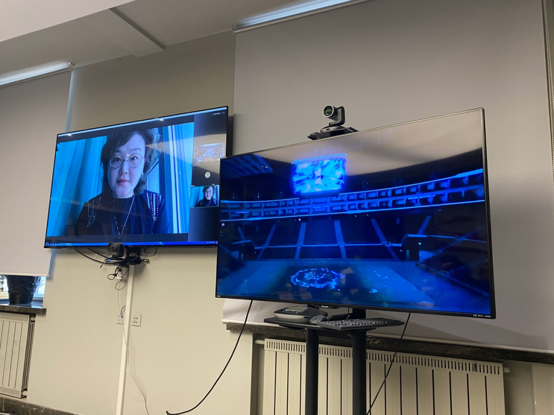 项目导演、天津美术学院副教授、硕士生导师蒋旎博士,在评审答辩会上向国家广播电视总局组织的评委会介绍项目实施细节。