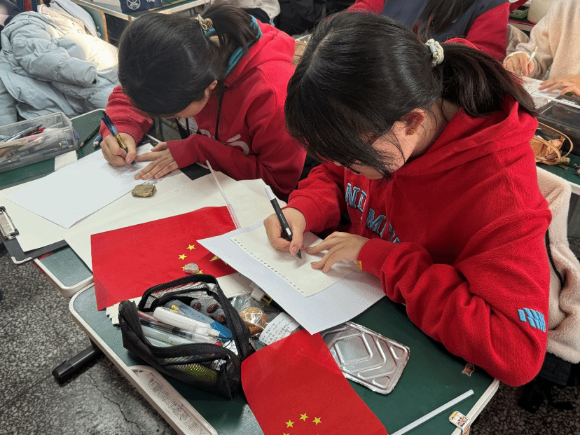 理论浸润心田,实践激发创意。宣讲结束后,活动进入特色“锡纸画”创作环节。青马学员带领美高同学,将刚刚领悟到的精神内涵转化为手中的艺术作品:锡纸在指尖折叠、塑形、组合,化身立体航天器、现代建筑群、传统纹样……每一幅闪耀金属光泽的作品,都是同学们对“中国之治”美好图景的艺术化表达。在动手创作中,抽象理论变得触手可及,青春智慧与创意激情在课堂上碰撞融合,加深了大家对国家发展方略的理解与认同。