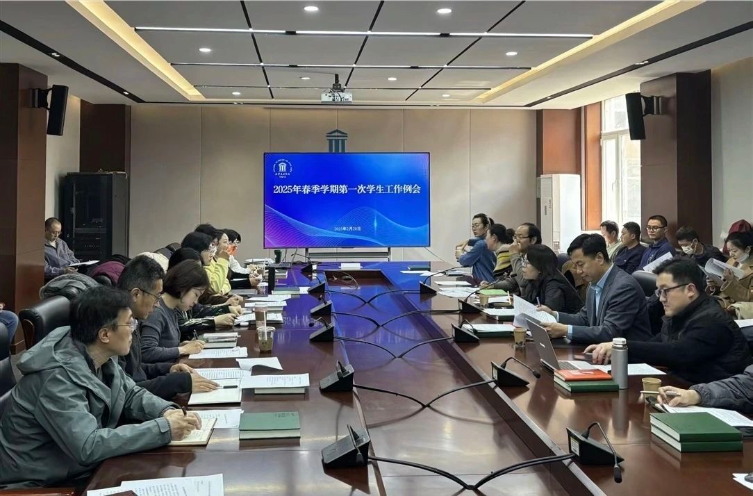 近日,我校2025年春季学期学生工作例会在天纬路校区南院小会议室召开。校党委常委、副院长陈占权,各学院分管学生工作的党组织负责人,全体辅导员,党委学工部、校团委全体教师出席会议。会议由党委学工部副部长胡永友主持。