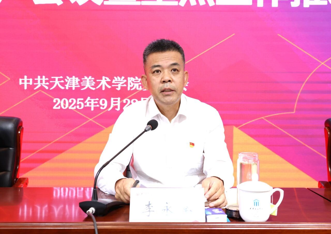 2025年9月28日,天津美术学院党委二届十四次全委(扩大)会议暨重点工作推动会在南院阶梯教室召开。校党委副书记、院长邱志杰出席会议并讲话,市纪委监委驻天津美术学院纪检监察组组长李永奎就进一步压紧压实学校管党治党政治责任等重点工作提要求,党委常委、副院长寇疆晖开展警示教育,党委常委、副院长陈占权主持会议。校党委委员,派驻纪检监察组负责同志,全体中层干部参加会议。