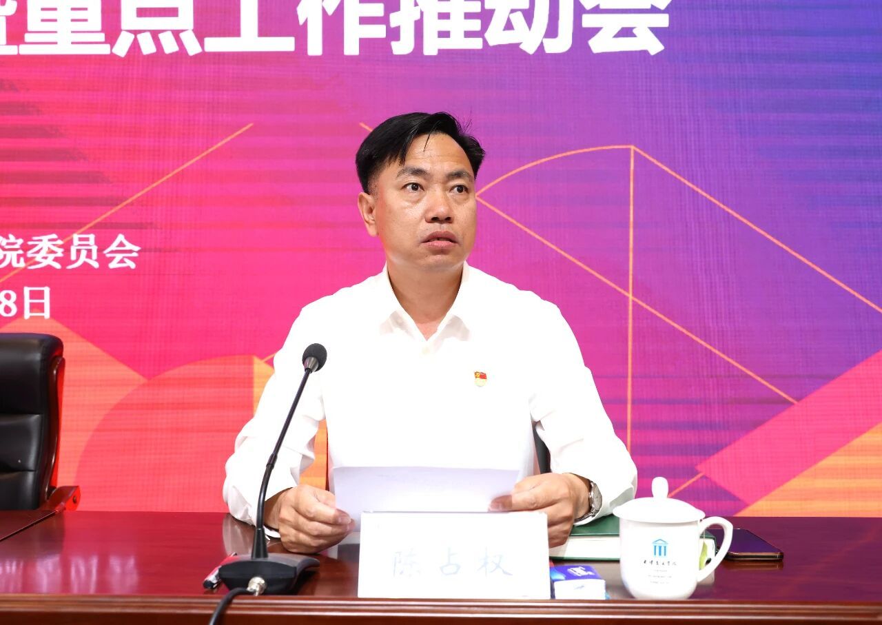 副院长陈占权在会议最后,就贯彻落实全会精神提出三点要求:一要抓好传达学习,各单位需及时组织专题会议,将思想和行动统一到学校党委部署上来,特别是与贯彻落实习近平总书记视察天津重要讲话精神、巩固深入贯彻中央八项规定精神学习教育成果及谋划“十五五”规划紧密结合;二要对标重点压实责任,围绕学科建设、申博攻坚、校园安全等关键领域,压实责任、密切配合,以钉钉子精神推动改革举措落地见效;三要保持昂扬奋进状态,以高质量发展为首要任务,做好“十四五”收官总结,超前谋划“十五五”规划,担当作为,确保圆满完成年度任务,向全校师生交出满意答卷。