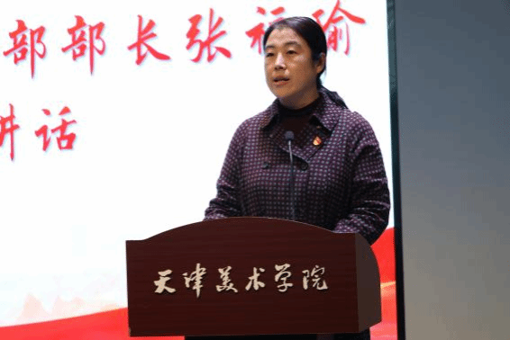 马克思主义学院中国近代史纲要课程教研室主任刘晓佳紧密围绕学校专业特点,将党史学习与美术创作有机融合,带领同学们从不同时期党史题材的美术经典作品出发感悟精神力量,阐释了红色美术作品如何发挥党史学习教育价值以及如何创作党史题材美术作品的相关问题,并鼓励同学们用好红色资源,传承红色基因,以手中画笔描绘出无愧于时代、无愧于人民、彰显天美精神的青春篇章。