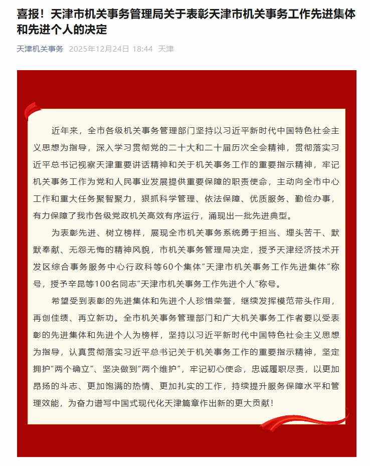“这份荣誉属于每一位默默奉献的后勤人。” 基建后勤处负责人表示,未来将以此次表彰为新起点,紧扣学校 “新艺科” 建设,进一步提升管理科学化、保障法治化、服务精细化水平,用更优质的后勤保障助力一流美术学院建设,为中国式现代化天津篇章贡献 “天美后勤力量”。