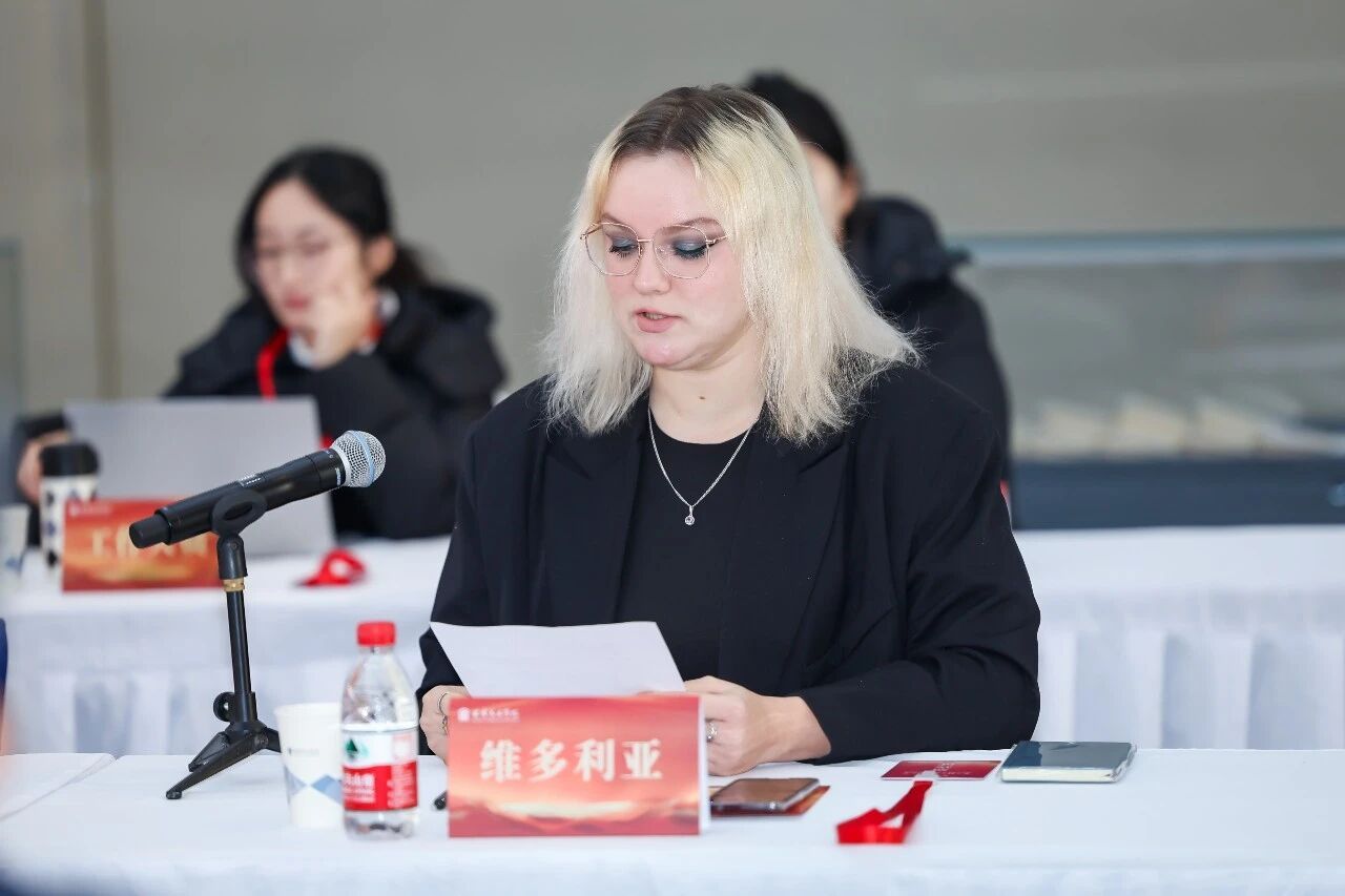 天津美术学院俄罗斯留学生代表维多利亚发言