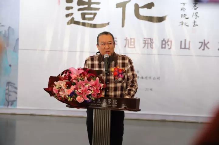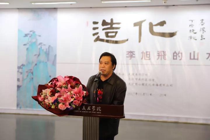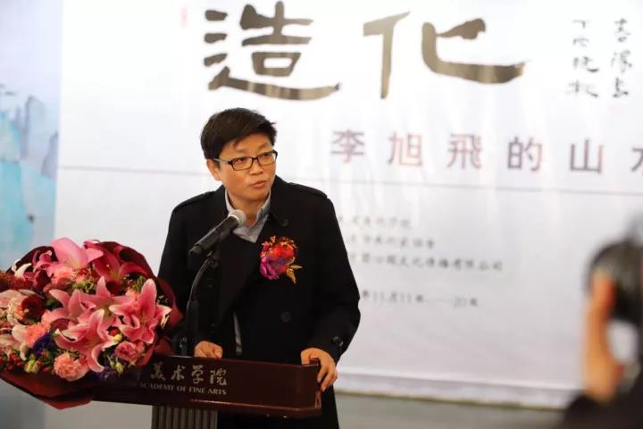 2017年11月11日上午11时,“造化——李旭飞的山水之境”中国画作品展在我校美术馆开幕。本次展览由天津美术学院、天津市美术家协会主办,天津美术学院美术馆、天津兰心阁文化传播有限公司承办。天津美术学院院长邓国源教授,我校艺术家杨德树教授,我校艺术家霍春阳教授,天津画院院长贾广健,天津市美术家协会秘书长李耀春,原天津画院副院长晏平,原天津市美术家协会副主席史振岭,原航天精工董事长曹军教授,中国银行天津分行副行长李欣,天津广播电视台经济广播总监张丽,天津广播电视台经济广播副总监李志强及我校各二级学院领导、新闻媒体和师生200余人参加了开幕式。开幕式由策展人杨可佳先生主持。