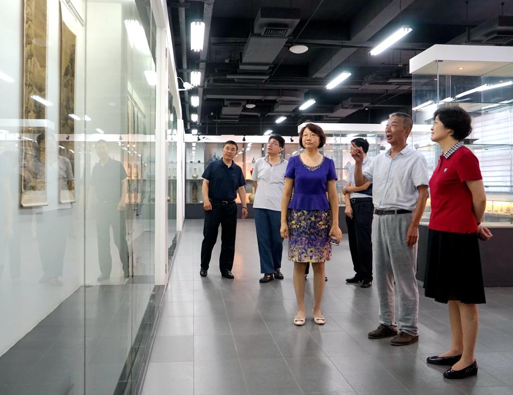 程丽华书记一行首先来到我校图书馆,参观了我校办学百余年以来珍藏的珍贵文物、书画和古籍。