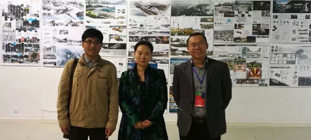 左起:环境与建筑艺术学院教师高颖、孙锦、孙奎利老师在展览现场
