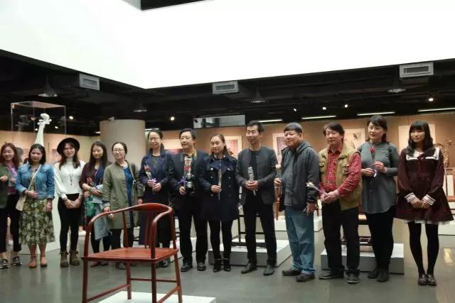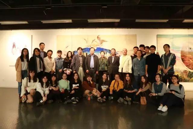 院长邓国源、院党委副书记蒋宗文陪同嘉宾与我院师生在展厅合影