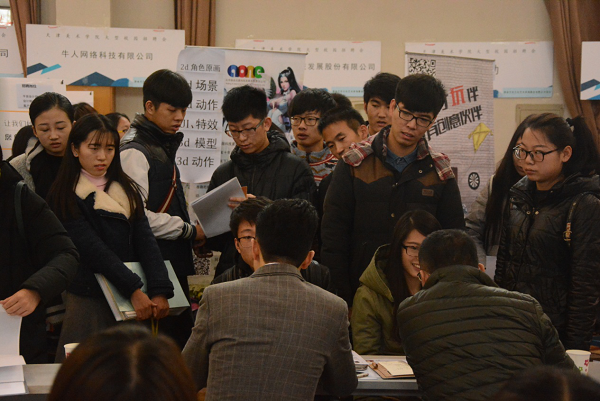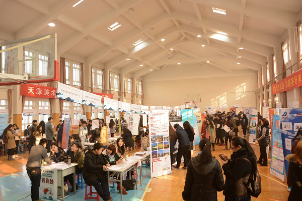 我院2016届毕业生大型校园招聘会于11月30日在学院体育馆举行,来自北京、天津等多地86家用人单位,提供了近800个就业岗位,面向天津美术学院学生开展专场招聘,其中近20余家企业为我院毕业生企业。共有900多名学生到会应聘,招聘现场十分火爆。