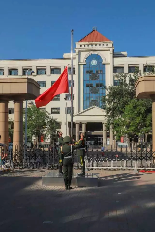典礼开始,国旗护卫队升国旗,全体人员面向国旗,奏唱国歌。