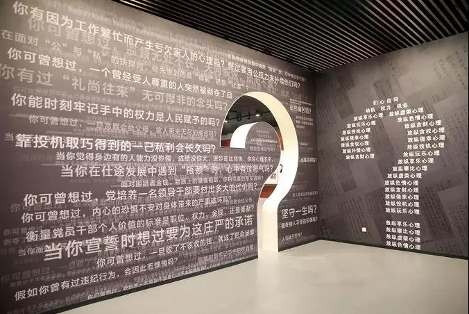 互动区以互动答题和自主选择的方式进行,分为四个展项:人生选择、无处不在;以案明理、四种形态;深刻反思、远离腐败;信守承诺、壮骨补钙。