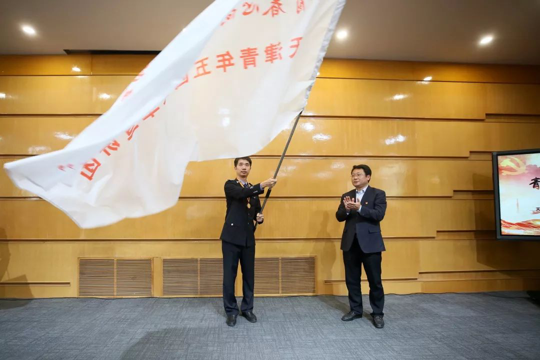 同时,团市委遴选了一批政治素养好、理论水平高、表达能力强的“天津青年五四奖章”(提名奖)、“天津向上向善好青年”获得者组建了市级宣讲团,在全市广泛开展“青春心向党·建功新时代”宣讲活动。宣讲团成员将深入基层一线,结合自己的亲身经历、切身感受和学习体会,结合当代青年运动的时代主题,将百年以来传承不息的五四精神发扬光大,展现广大青年投身新时代中国特色社会主义伟大实践的实际行动和良好风貌。团市委书记王峰同志为宣讲团成员代表授旗。