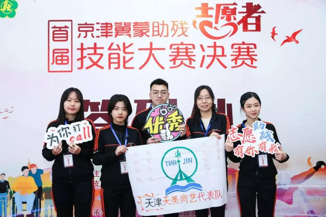12月4日,由北京市残联主办,天津市残联、河北省残联、内蒙古自治区残联支持,北京和众泽益志愿服务中心承办的“首届京津冀蒙助残志愿者技能大赛”决赛在京圆满结束。由我校四名同学组成的天津天美尚艺代表队,代表天津市参加此次大赛,并获得铜奖的好成绩。