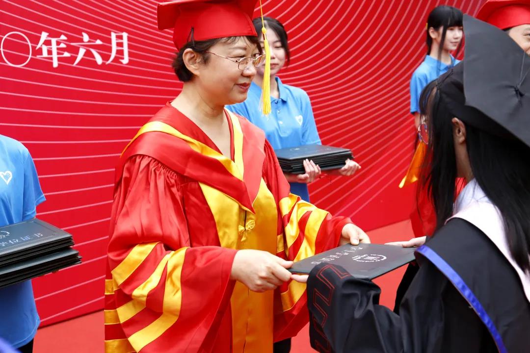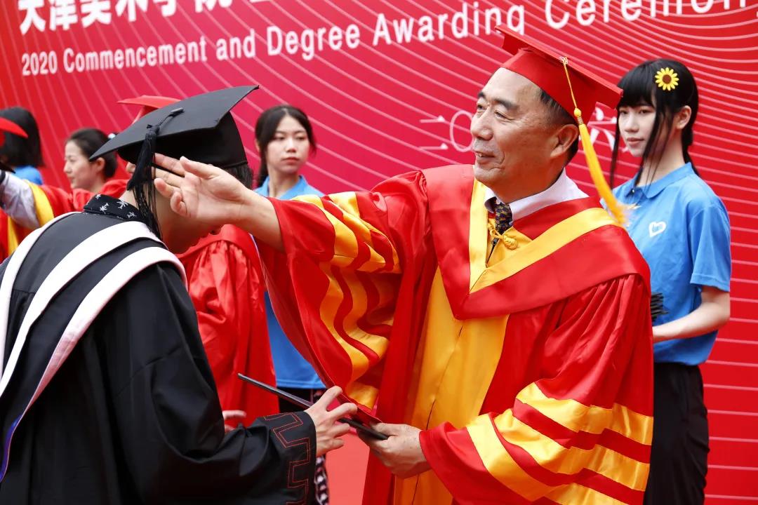 最后,授予学位并颁发学位证书的环节成为典礼最为庄严和神圣的时刻,校领导班子成员及教学单位领导共同为实验艺术学院360名毕业生颁发学位证书并拨穗。
