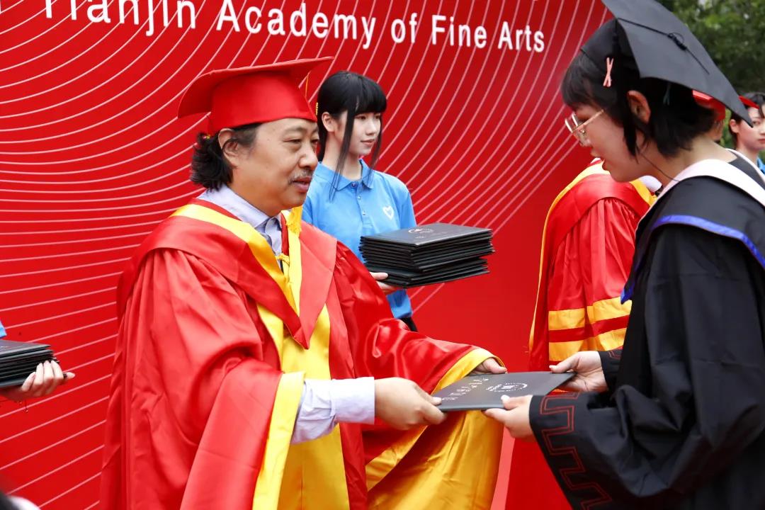 天津美术学院教授代表杨德树、张京生、王振德、王元珍、霍春阳、庞黎明,知名校友代表,优秀毕业生家长代表虽然没有出席现场,但通过网络为学生们送上了真挚的毕业祝福。