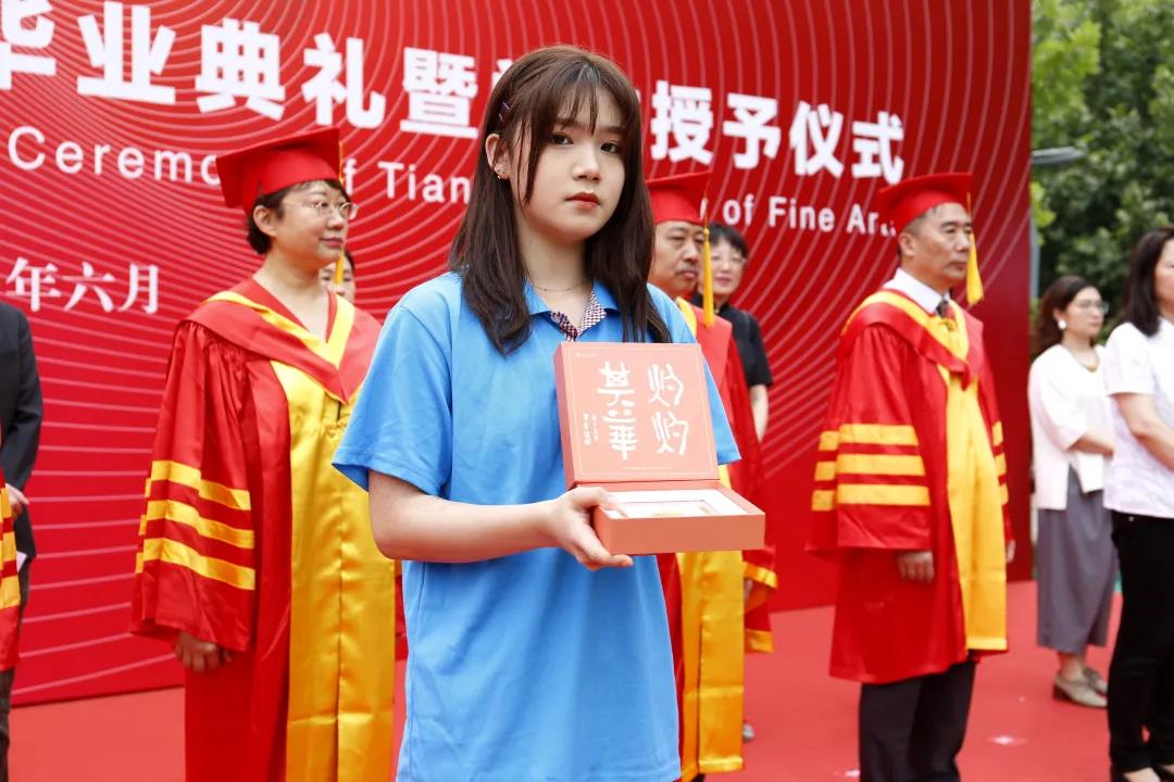 为激励同学们勤奋学习,努力进取,从2014年开始学校设立“天津美术学院院长奖”。校党委书记孙杰、院长贾广健为2020届实验艺术学院获得“天津美术学院院长奖”的曾玮、杜静怡、郝明明、侯天翼、任晓丽、沈枭、王翔宇、翟伯文同学颁发荣誉奖杯。