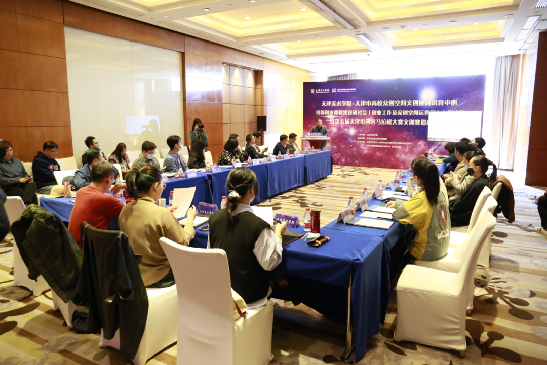 10月22日上午,由天津美术学院主办,天津市高校众创空间联盟协办的天津市高校众创空间文创协同培育中心系列活动暨第五届天津市创客马拉松大赛文创赛道启动仪式在天津海河假日酒店举行。天津美术学院党委副书记蒋宗文教授,天津市高校众创空间联盟秘书长单位-天津市大学软件学院党委委员、创业学院院长张建勇博士,天津大学宣怀学院院长施亮星教授等嘉宾出席了启动仪式。来自天津市14所高校的创业工作负责人、双创导师代表以及企业代表,来自我校二级学院的院系领导代表、专业教师代表、创业工作牵头辅导员,党委学工部、教务处、团委教师代表以及优秀创客代表近50人参加了本次启动仪式,活动由党委学工部副部长史雅宁主持。