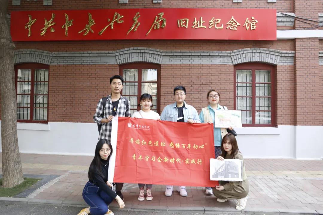 为积极响应我校“寻迹红色遗址 感悟百年初心”新时代·实践行活动,5月13日,我校青年学习会学生代表和天美融媒体工作室,在指导教师杨春扬、王金阳的带领下,赴天津市和平区开展“寻迹红色遗址 感悟百年初心”教育实践活动,现场讲解党史,手绘历史建筑。