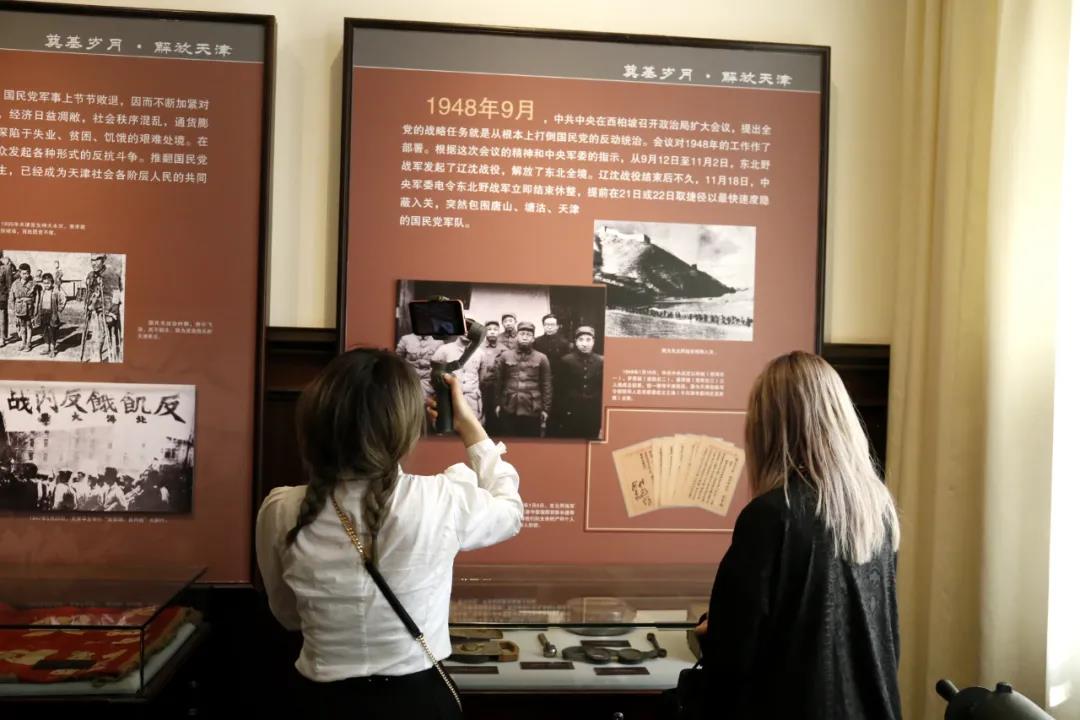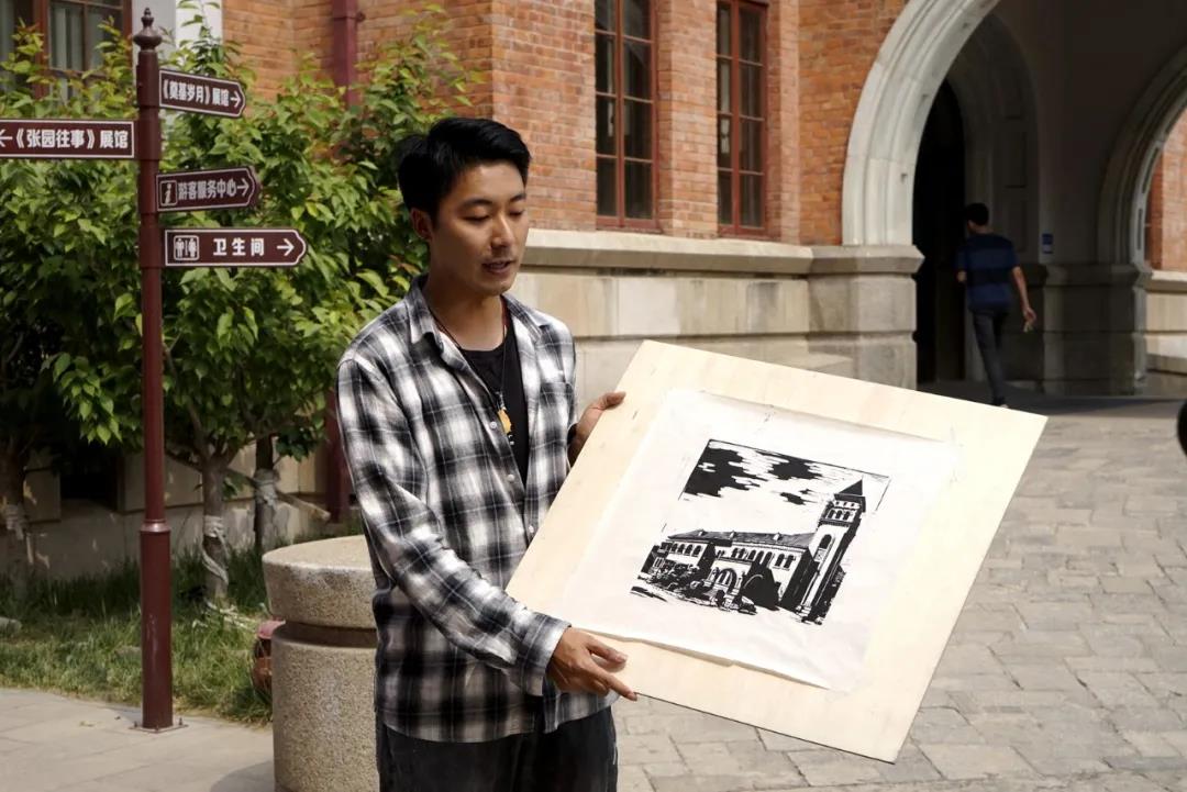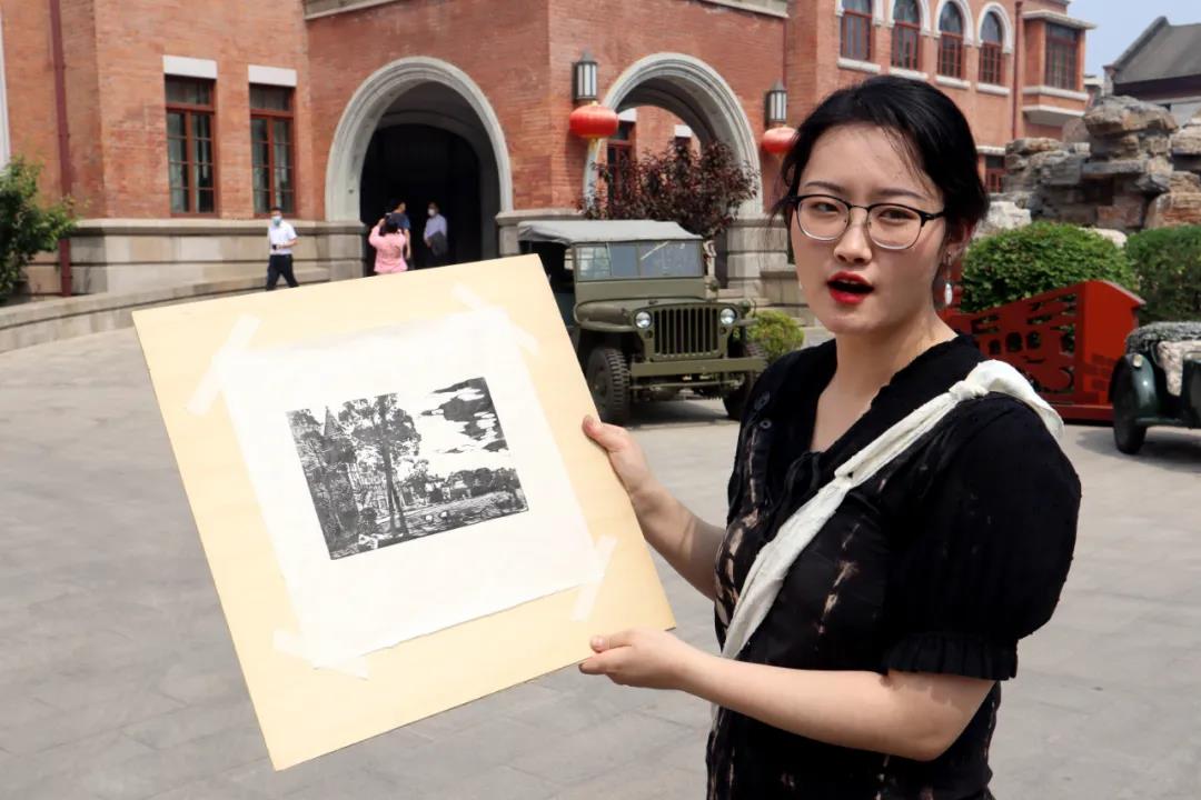 实践团在张园(天津军管会、中共天津市委旧址)展示手绘作品