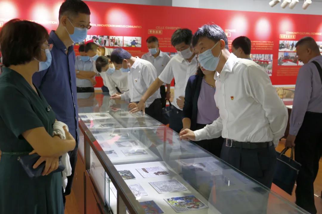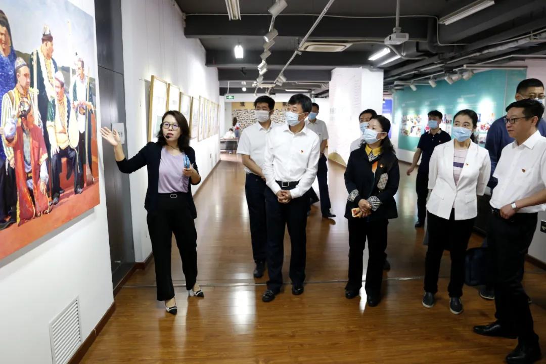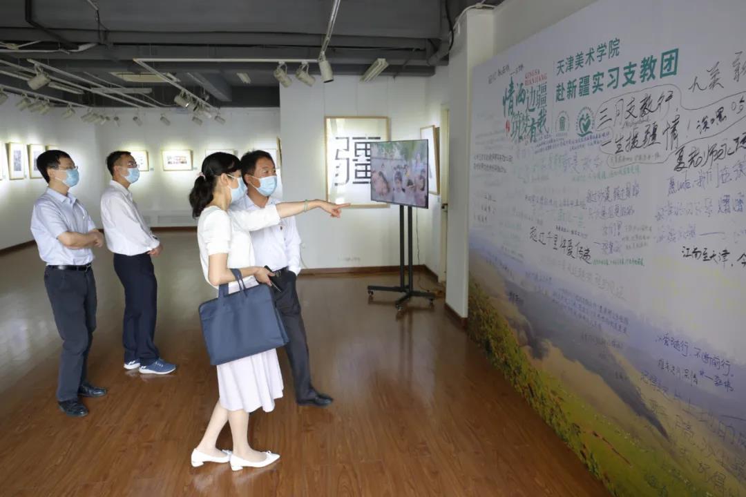 市教育工委专职副书记孙志良,市合作交流办副主任王东,市委统战部二级巡视员王文忠,新疆驻天津市工作组副组长庞爱民及以上单位下属处室党支部负责同志、党员干部代表参加活动。天津美术学院党委书记孙杰,党委副书记、院长贾广健,副院长郭振山,副院长李鑫以及相关职能处室负责人陪同观展。