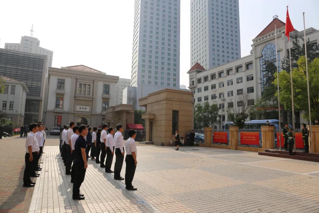 参观开始前举行了庄严的升国旗仪式。随后,在校领导的带领下各单位领导和党员干部代表集中参观了“梦舟催发,丝路朱霞”天津美院援疆支教团美术创作暨成果汇报展。