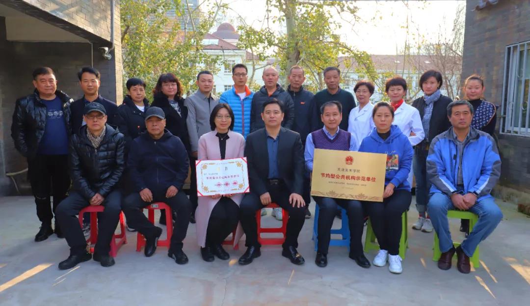 近日,天津美术学院荣获由国家机关事务管理局、国家发展改革委、财政部联合颁发的“节约型公共机构示范单位”荣誉称号。基建后勤处处长贾群祥带领能源中心袁金玲将奖牌领回。