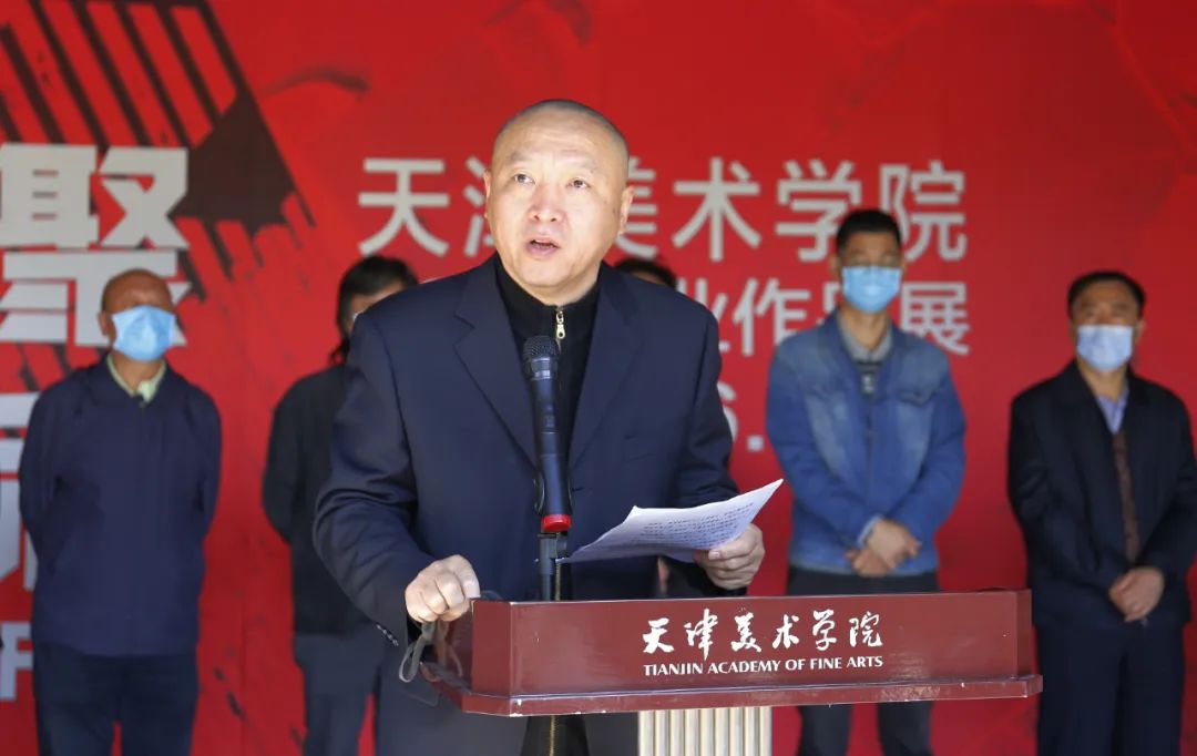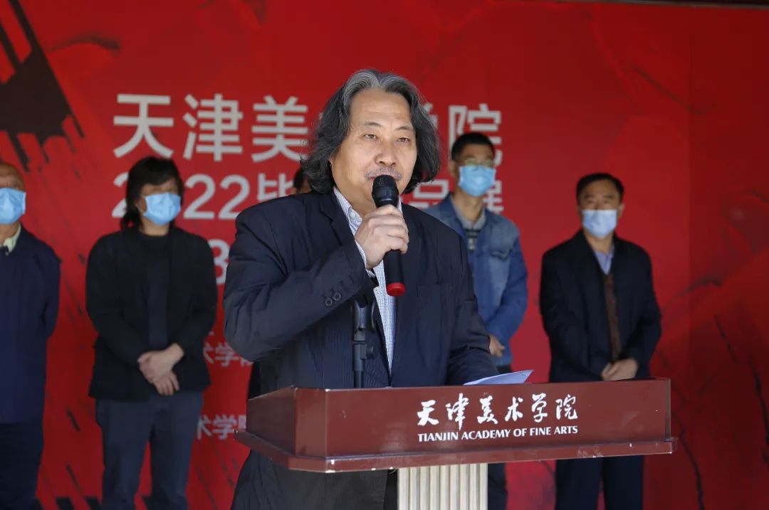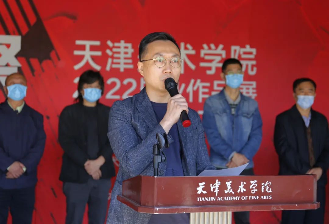 贾广健在致辞中讲到,天津美术学院2022届毕业生作品展如期而至,今年毕业季的主题是:“融聚合和”。融,概括了学校在推进新文科建设和教学改革中的新教育理念;聚,则表明了全校师生共抗疫情、勠力同心、共克时艰的坚守和汇聚成的力量;合,通过毕业展恰如其分地表现出合而为一的不可分割,把同学们聚合在一起;和,表示把不同的事物协调好,达到一种和谐、美好的圆满。这一主题高度概括了本届毕业生培养过程和本次展览的特点,并传达了我们的美好祈愿。于学校而言,毕业展是对学校人才培养质量的一次全面检验。这是学院坚持立德树人的根本任务、扎实推进思政教育,着力于“新文科”建设,不断提高教学质量结出的硕果。于毕业生而言,毕业展是每一位毕业生同学四年学习成果的一次总结,也是他们艺术之旅的新起点。希望毕业生们秉承“崇德尚艺、力学力行"的校训精神步入社会,勇做新时代的奋斗者和攀登者。