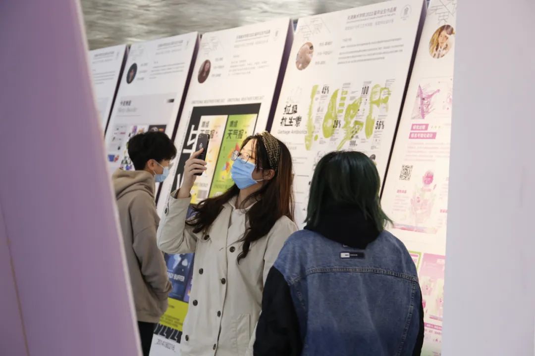蒋松儒讲到,毕业设计的辅导过程拉近了我们与学生的距离,让学生感觉到老师、学校的温情。在疫情防控常态化下,学生依然保持着高度的创作热情及充沛的创作精神,创作出了很多优秀的作品。今年,我们改变以往以设计形式、成果作为设计目标的毕业设计方向,强化设计思维以及设计流程,以过程代成果。强化设计观念、概念的开发,以需求为导向,以设计为工具,积极创新,无限探索。展览现场采用整体布展的方式,集合所有同学的作品,统一规划设计,静态展示与动态展示相结合,形成具有统一性的整体效果。