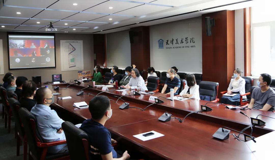 会议首先介绍了天津美术学院近年来主题性创作阶段成果及推动主题创作与设计、主题展览和服务社会工作重要举措。近年来,学校坚持以人民为中心的创作导向,从新时代文艺创作的社会主义方向、核心价值观、审美追求、思想和艺术性等多维度、多层面进行艺术创作和设计实践。师生们深入生活,潜心创作,聚焦现实题材,紧紧围绕“讴歌党、讴歌祖国、讴歌人民、讴歌英雄”的主题,用绘画、雕塑、设计、动画、新媒体等艺术形式,表现党的十八大以来,中国社会发生的巨大变化,创作出一批精品力作。