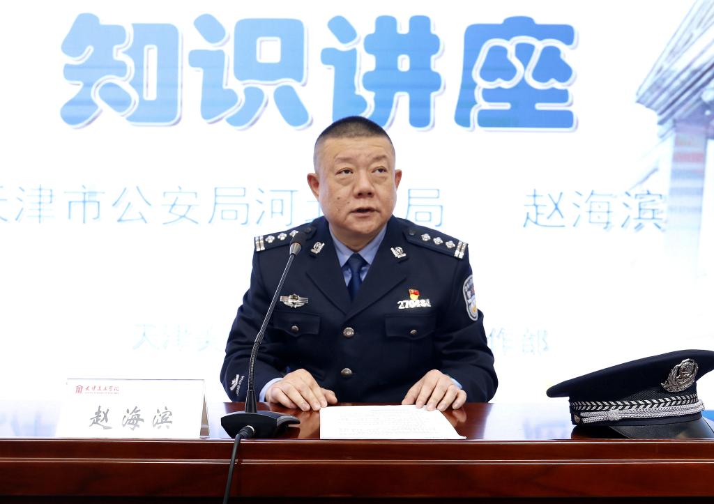 讲座中,天津市公安局河北分局副支队长赵海滨重点围绕邪教的概念、种类、邪教危害等三方面进行讲解介绍,并结合近年来的典型案例向师生们传授如何识别和抵制邪教入侵,深刻揭露了邪教反社会、反科学、反人类的本质。