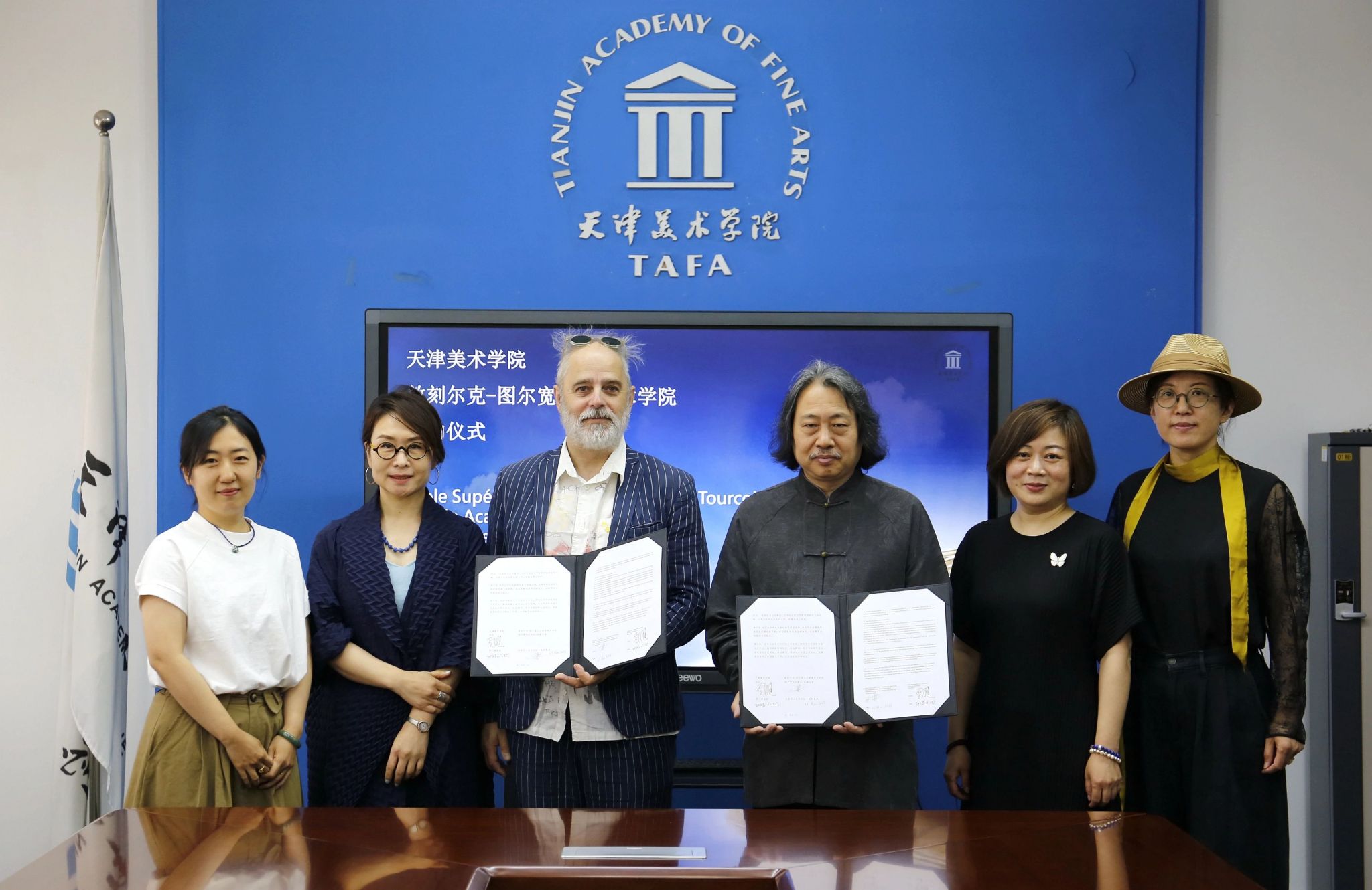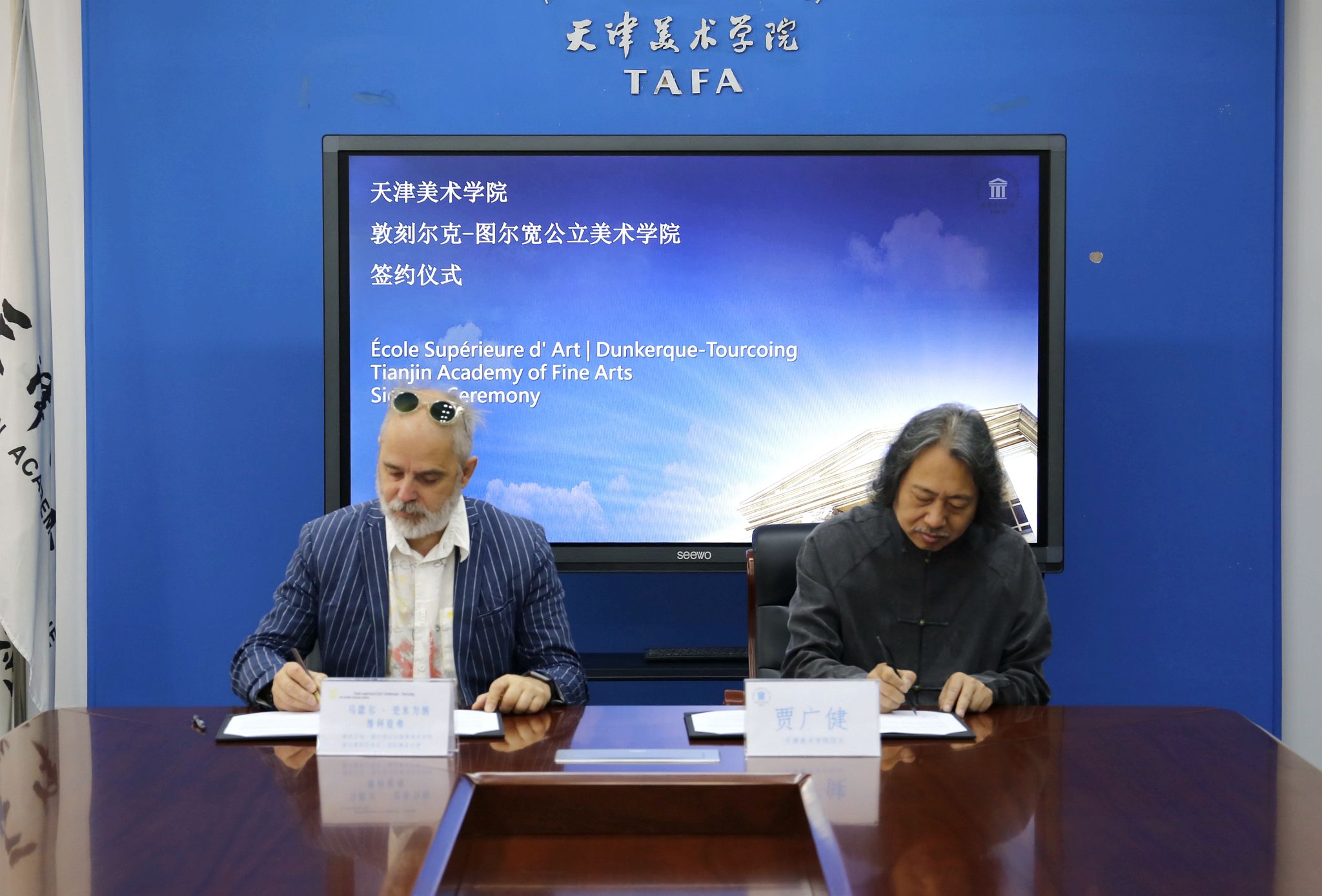 敦刻尔克-图尔宽公立高等美术学院副院长、国际事务主管Martial CHMIÉLINA对我校的热情接待表示感谢,同时回顾了两校二十余年的合作历程。Martial CHMIÉLINA副院长表示,在两校合作期间,高度协作、沟通顺畅,联合培养项目从未间断,更多次开展了教师互访和工作坊教学项目。他表示,非常荣幸第四次来访天津美术学院,并在实验艺术学院举办教学工作坊,天津美术学院学生的艺术创作能力以及天美教师的国际化视野给他留下了深刻的印象,希望在已有的合作基础上进一步深化两校长期合作关系。最后,贾广健院长、Martial副院长代表两校续签合作协议,这是双方第三次合作协议的续签,见证了双方关系的历久弥新。