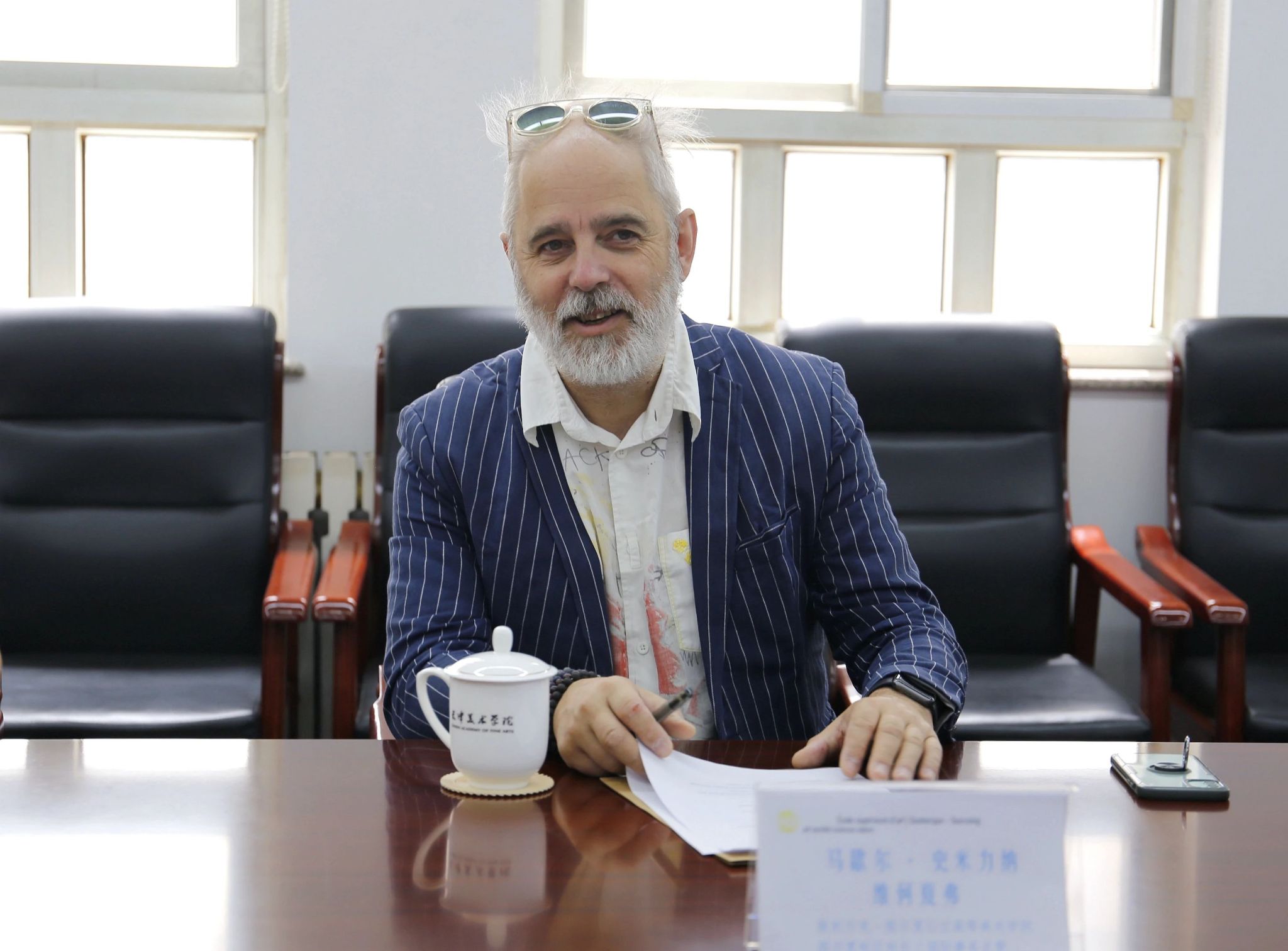 天津美术学院院长贾广健代表学校向Martial副院长表示诚挚的欢迎,随后介绍了近年来学校在事业发展、学科建设、国际教育、合作交流等方面取得的成效。贾广健院长表示,国家积极推进高等教育领域的交流与合作,这为我们的深入合作创造了平台,天津美术学院十分珍视彼此间持久互信的合作,同时对未来两校能开展更多形式、更高质量的合作充满信心。敦刻尔克-图尔宽公立高等美术学院副院长、国际事务主管Martial CHMIÉLINA讲话