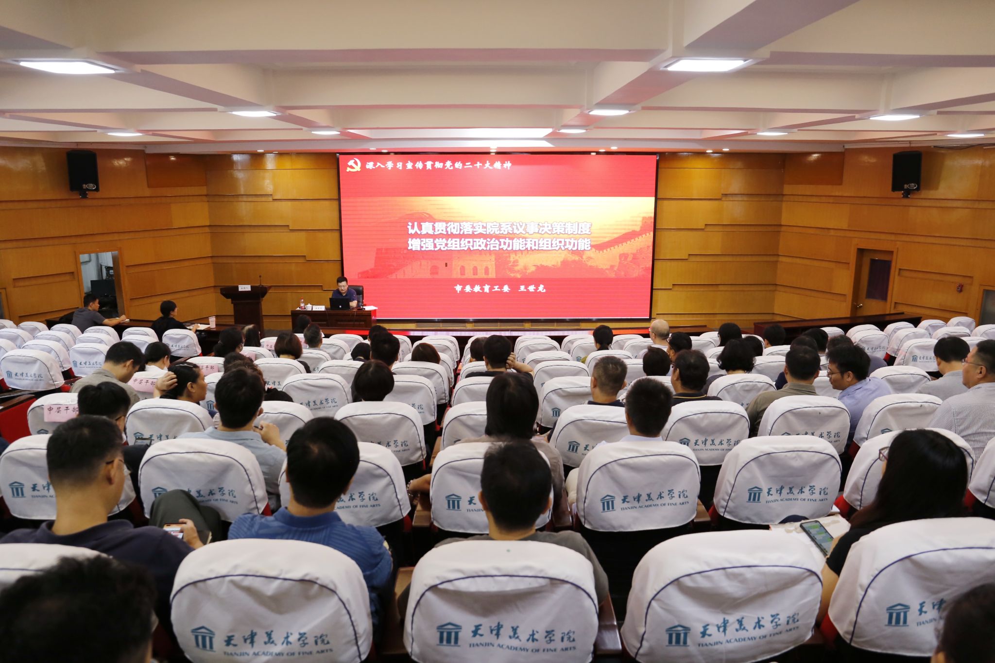 9月21日上午,本年度第二期干部学习大讲堂在天纬路校区南院阶梯教室开讲。市委教育工委、市教委组织处副处长王世龙同志受邀到我校,为全体中层干部和专兼职组织员,以《认真贯彻落实院系议事决策制度 增强党组织政治功能和组织功能》为题进行了专题讲座。