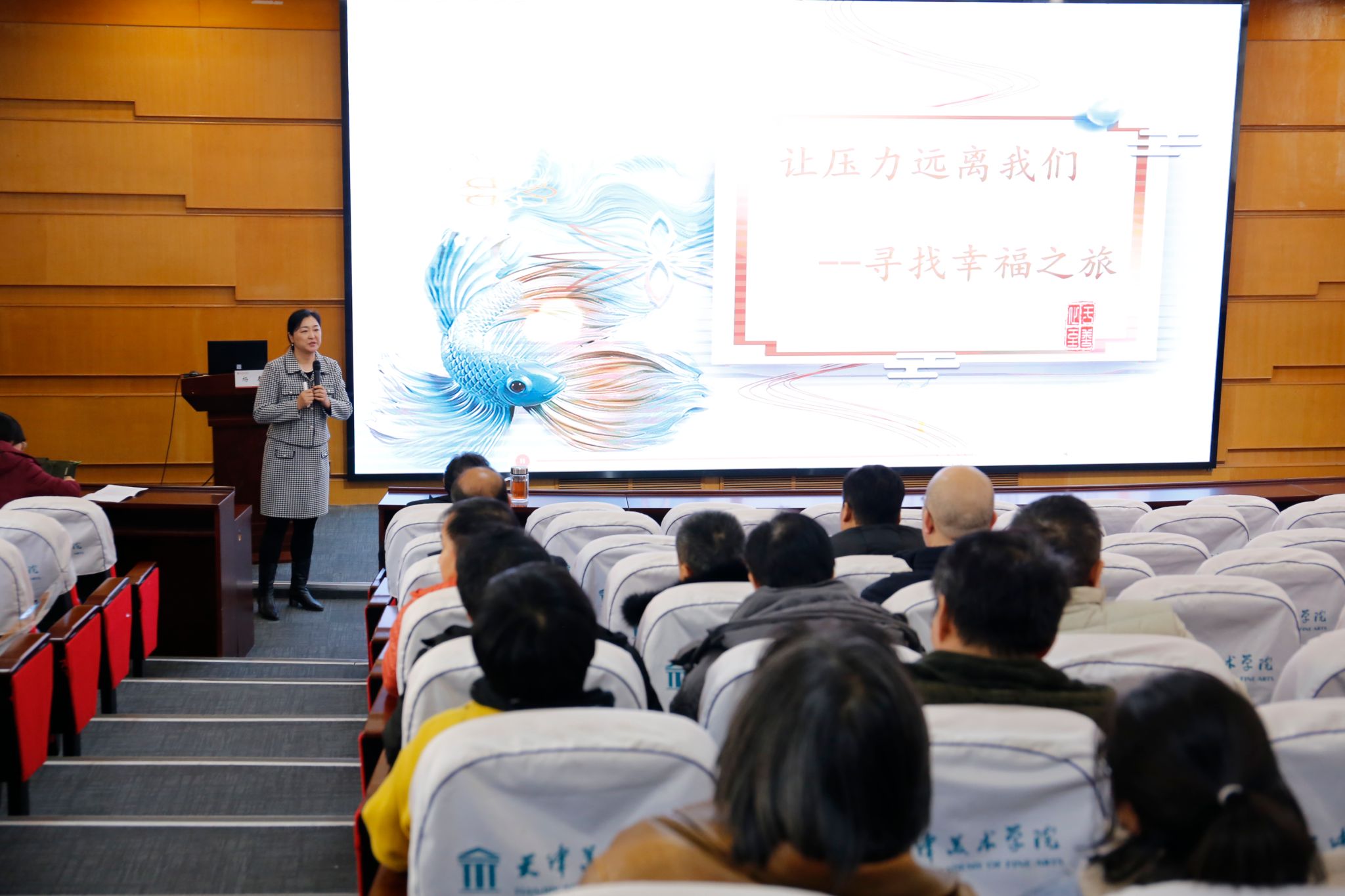 11月28日下午,由党委组织部和工会联合组织的本年度第四期干部学习大讲堂在南院阶梯教室开讲。活动特邀天津师范大学心理学部杨春教授以《让压力远离我们——寻找幸福之旅》为主题,为全体中层干部和辅导员进行了专题讲座。参加讲座的还有各二级单位工会会员代表。