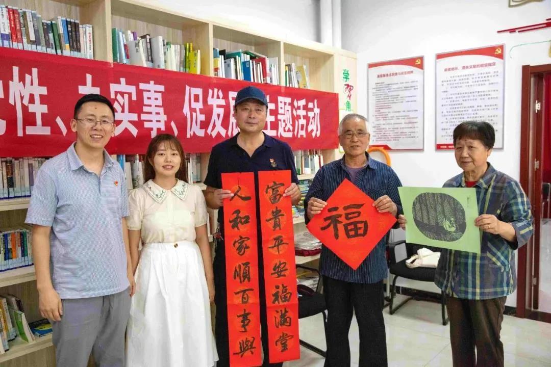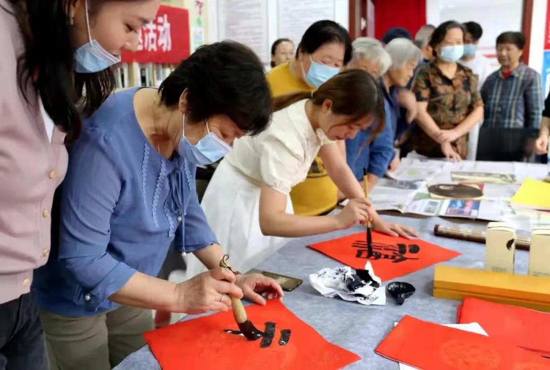 最后,美院师生带领大家进行主题版画体验与书法美育活动。主题版画以“红船精神“、党史等为内容,通过绘画形式,再现了中国共产党成立以来的重大节点,而书法艺术则通过讲解与书写,带领大家从笔墨线条中“学思践悟”中国共产党人的伟大精神谱系。